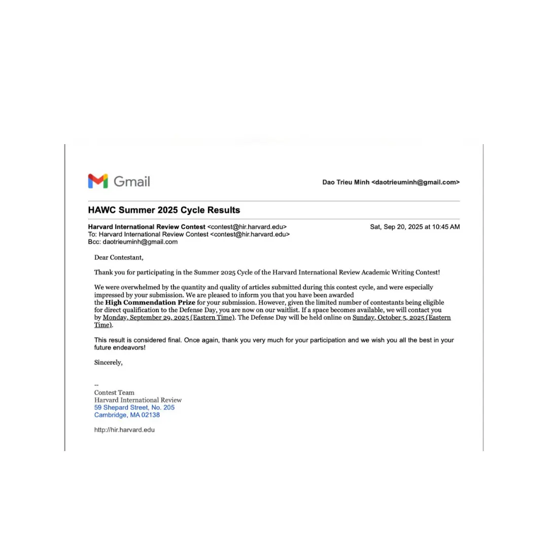 HIR Writing Contest High Commendation Prize Summer 2025