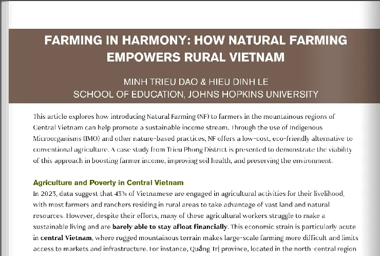 Presented the importance of Natural Farming in establishing the economic sustainability for poor farmers in Vietnam at JHU sustainability symposium.